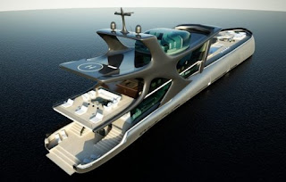 Beluga - the ship with five suites, a fully glazed cabin roof, SPA- salon and fitness center, a cinema, disco clubs, a library and even a greenhouse, where there are real palm trees and a small kitchen garden is divided.